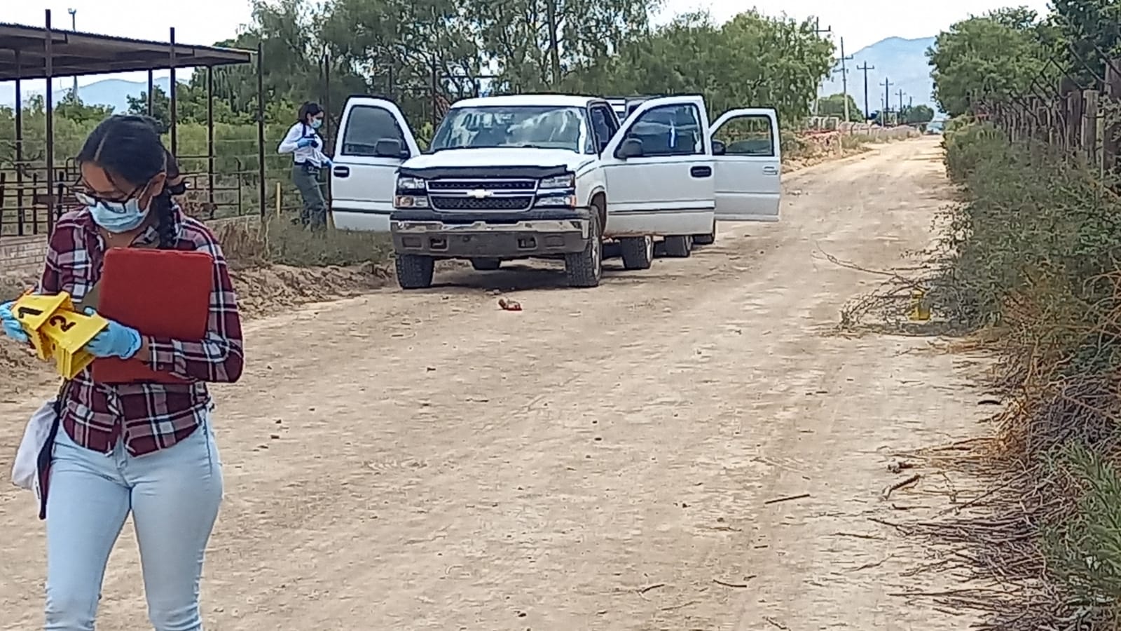 Este día se registró un gran operativo policíaco por elementos de la policía Municipal, Estatal y Ministerial así como la Guardia Nacional al momento de efectuar recorridos por la carretera a Ciudad Juárez y en el kilómetro 148 en el denominado Jaguey en un terreno de terracería se percataron de dos unidades con las puertas abiertas las cuales se encontraban a un costado de unas nogaleras.