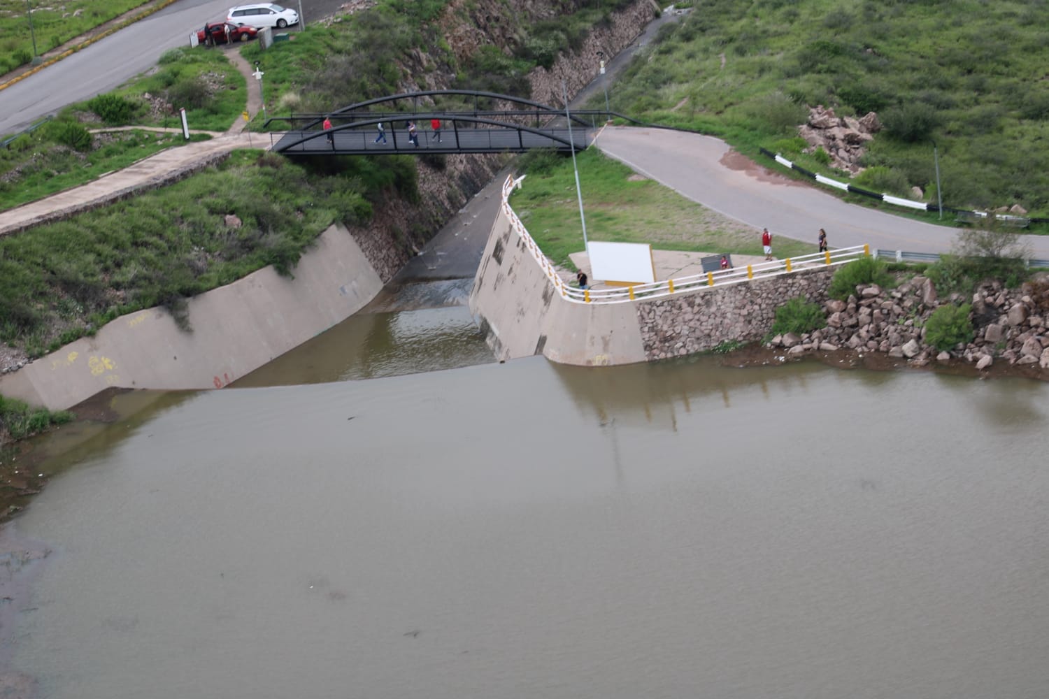 Desde temprana hora, el Halcón 1 de la Policía Municipal, sobrevoló la ciudad, incluyendo las tres presas de la Capital y las zonas bajas de la mancha urbana, sobre todo aquellas por donde pasan los arroyos de descarga de las presas Chihuahua y El Rejón.