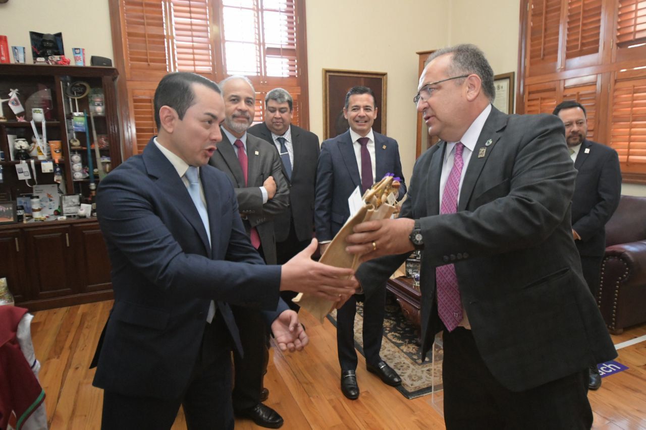 En un encuentro que reafirma la colaboración entre las dos instituciones educativas más importantes del estado, el rector de la Universidad Autónoma de Chihuahua, Maestro Luis Alfonso Rivera Campos, sostuvo una reunión con su homólogo de la Universidad Autónoma de Ciudad Juárez (UACJ), Daniel Constandse Cortez