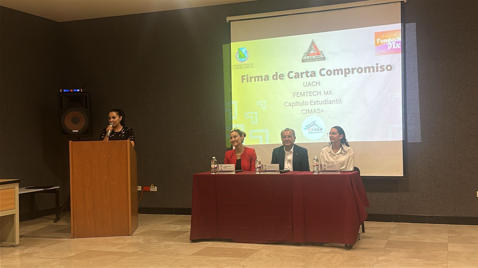 La Universidad Autónoma de Chihuahua, a través de la Facultad de Medicina y Ciencias Biomédicas, firmó una carta compromiso con FemTech México y el capítulo estudiantil CIMAS+, con el objetivo de establecer próximamente un convenio de colaboración que permitirá a estudiantes participar en proyectos innovadores enfocados en salud femenina.