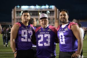 Jesús Adrián Juárez Davila, capitán Line Backer de las Aguilas agradeció a directivos y personal que han hecho un esfuerzo fundamental, así como a las familias por el amor que inspiran confianza para salir al campo, finalizó con la frase «Las Águilas no vuelan alto, vuelan mas allá de lo inimaginable».