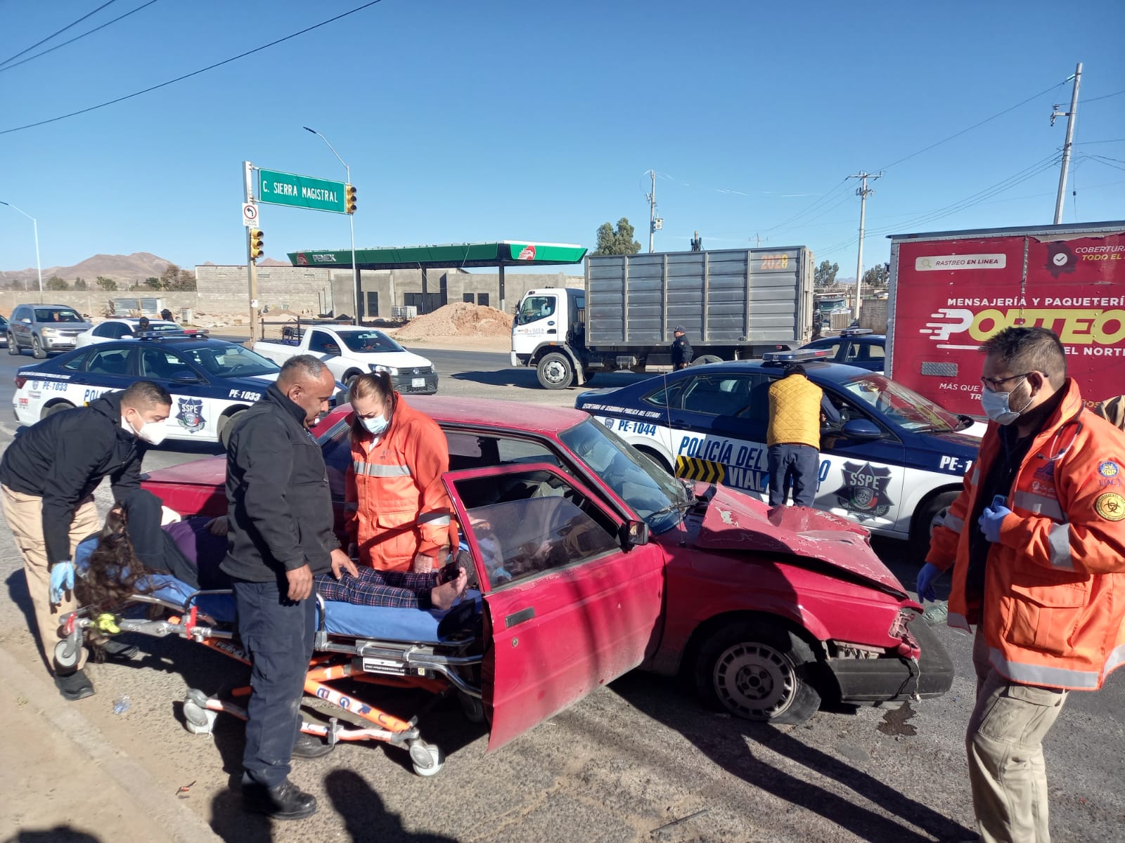 La mañana de éste jueves se registró un aparatoso accidente vial por falta de semáforos en la colonia Sierra Azul quedando dos personas heridas.