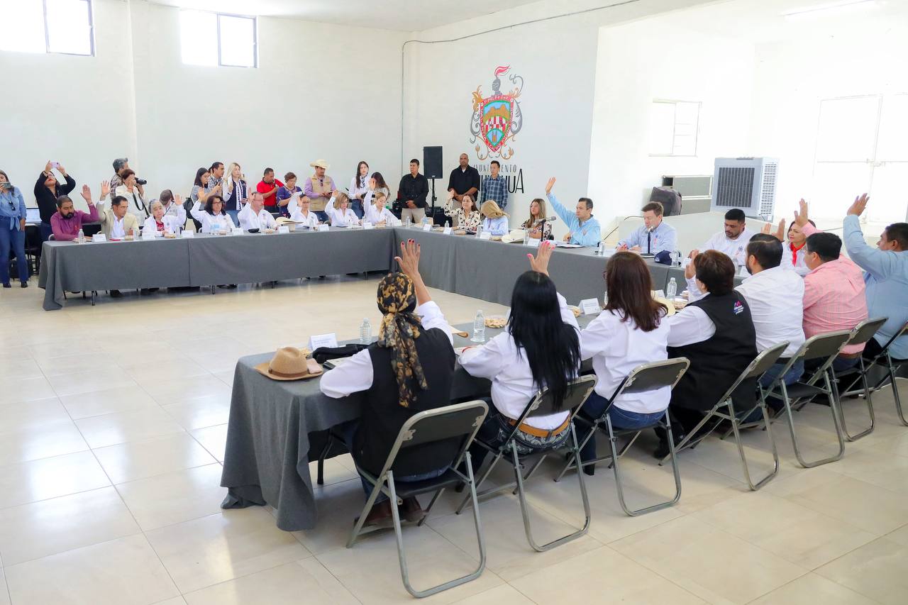 Además, fue aprobada la convocatoria para la elección de las Autoridades Auxiliares Municipales para el período 2024-2027 y el punto de acuerdo para declarar recinto oficial el salón de usos múltiples de la sección municipal de El Charco, a fin de celebrar a las 11:00 horas del día 9 de octubre de 2024, la siguiente Sesión Ordinaria del Ayuntamiento.
