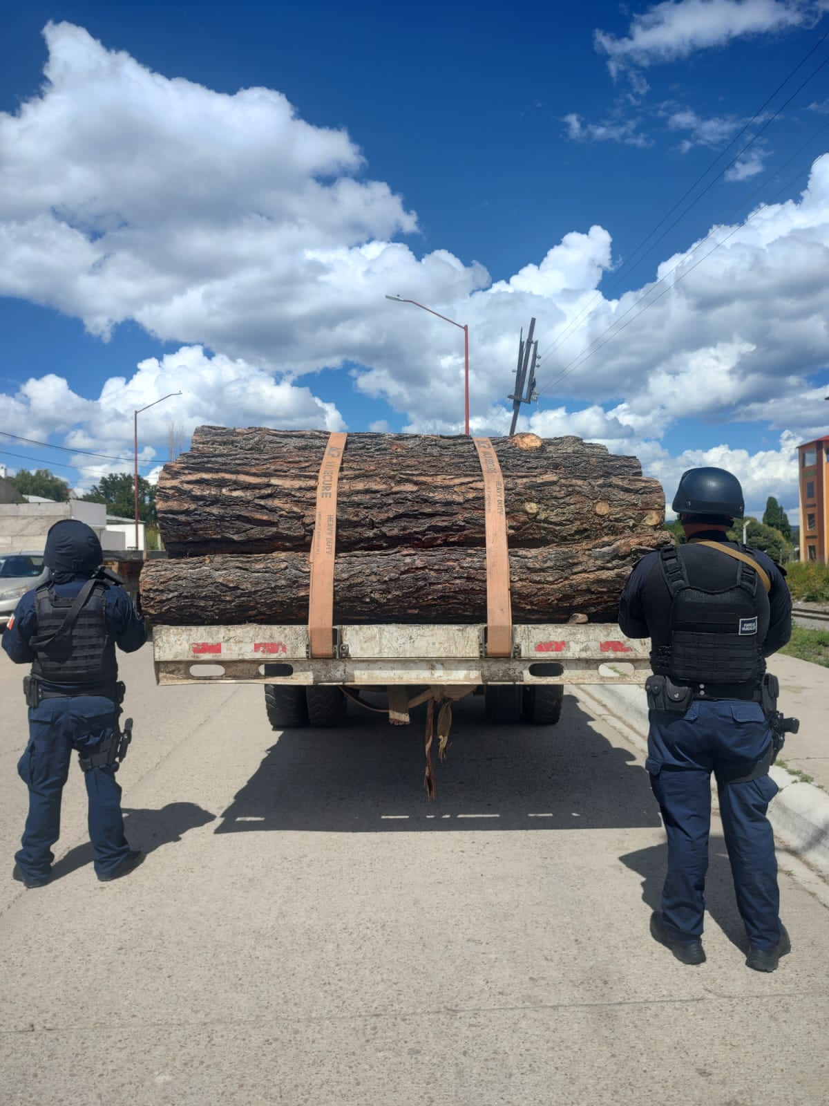 Elementos de la Secretaría de Seguridad Pública del Estado (SSPE), adscritos a la Coordinación de Zonas Rurales, aseguraron en el seccional de San Juanito, municipio de Bocoyna, un camión cargado con trozos de madera talada de manera ilegal.