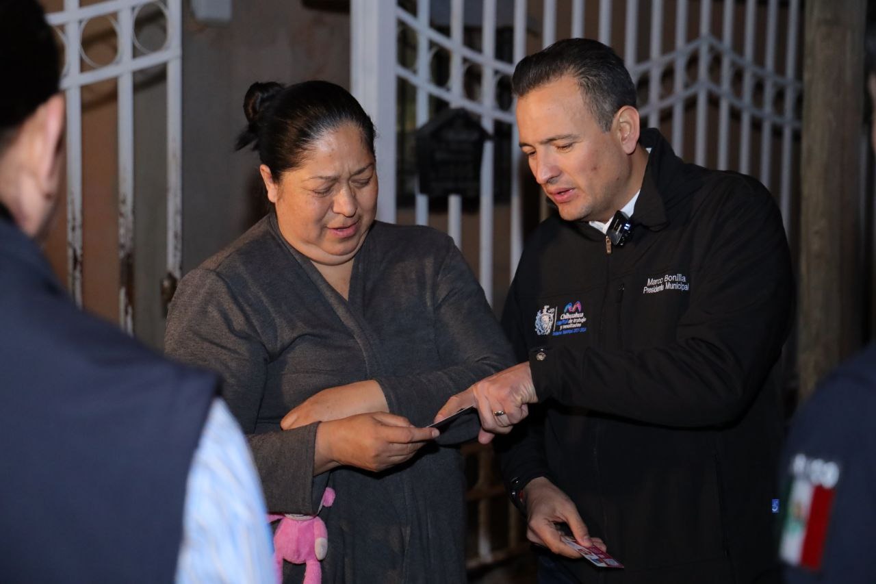 Chihuahua, Chih. A 16 de enero de 2024.- El alcalde Marco Bonilla en compañía del director de Seguridad Pública Municipal, Julio César Salas, recorrieron la colonia Deportistas para conocer y atender las necesidades en materia de seguridad.