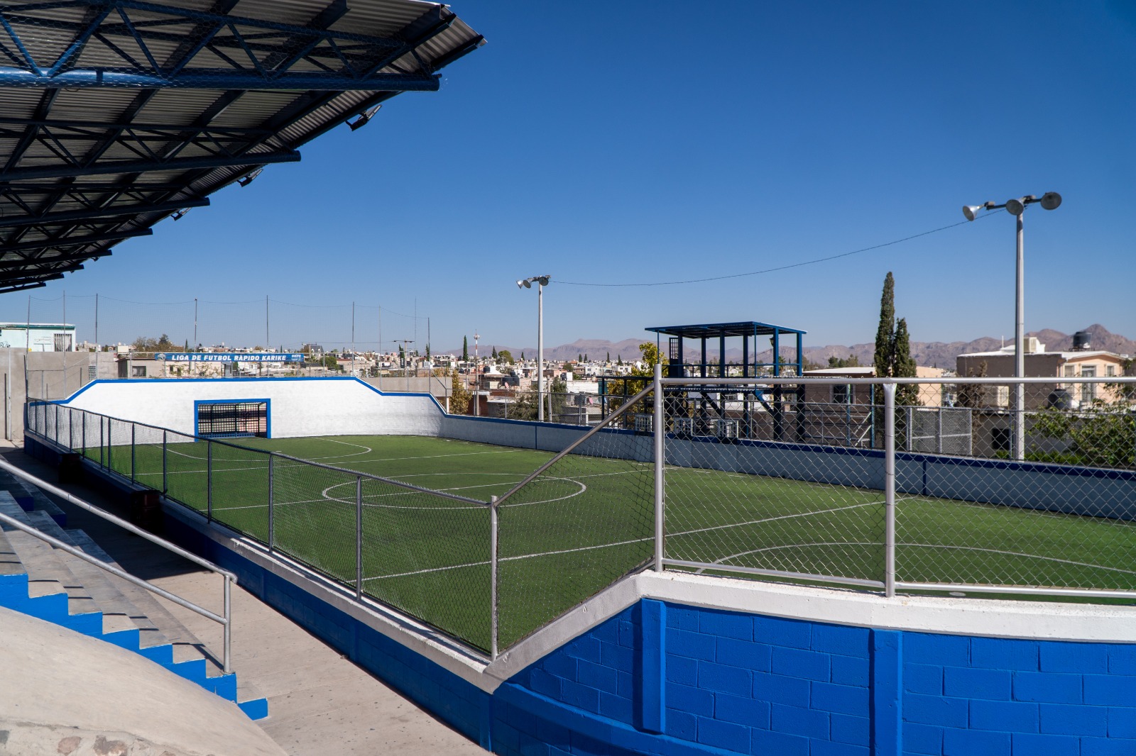 Con una inversión de 5 millones de pesos del Presupuesto Participativo, edición 2024, se remodela la cancha de futbol rápido, instalan luminarias LED, aparatos de ejercicio y colocación de arcilla en áreas de juegos, así como pintura en muros, baños, cabina de transmisiones y techumbre.