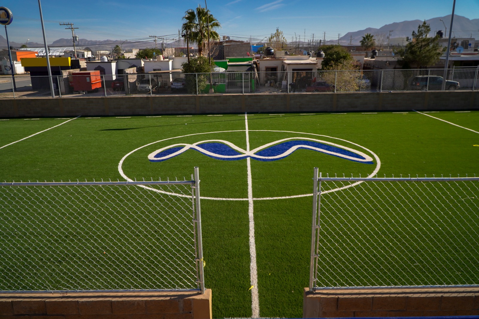 Hasta la fecha se trabaja en los últimos detalles como colocación de malla ciclónica en el perímetro para evitar que los balones salgan fuera, trabajos de pintura y en días posteriores se trabajara en la instalación de las porterías.