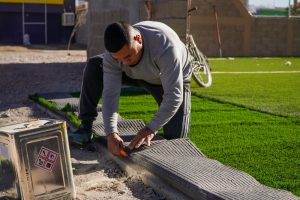Dentro de los trabajos que se han realizado son construcción de muros de block, construyeron gradas para permitir que los espectadores estén cómodos al ver los partidos, instalación de un barandal en las mismas para su acceso, así como también colocación de pasto sintético y reflectores tipo LED para la iluminación de la cancha.