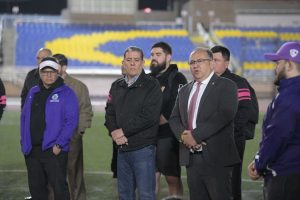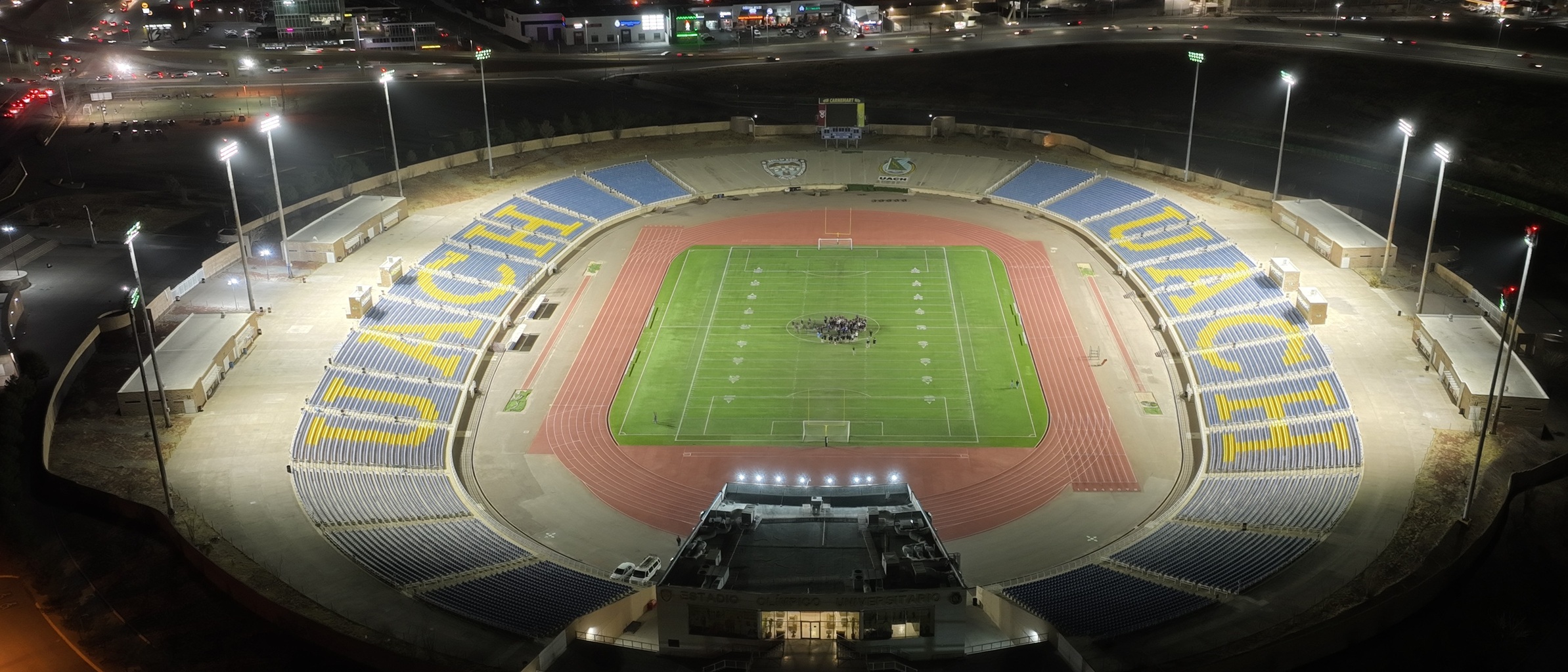 El equipo de fútbol americano de las Águilas de la UACh fueron los testigos de honor del encendido de las primeras 133 luminarias reflectoras led de última generación de 500 watts cada una las cuales permiten una iluminación expansiva y uniforme sobre el terreno de juego, la pista de atletismo y la zona de gradas del Estadio Olímpico Universitario (EOU).
