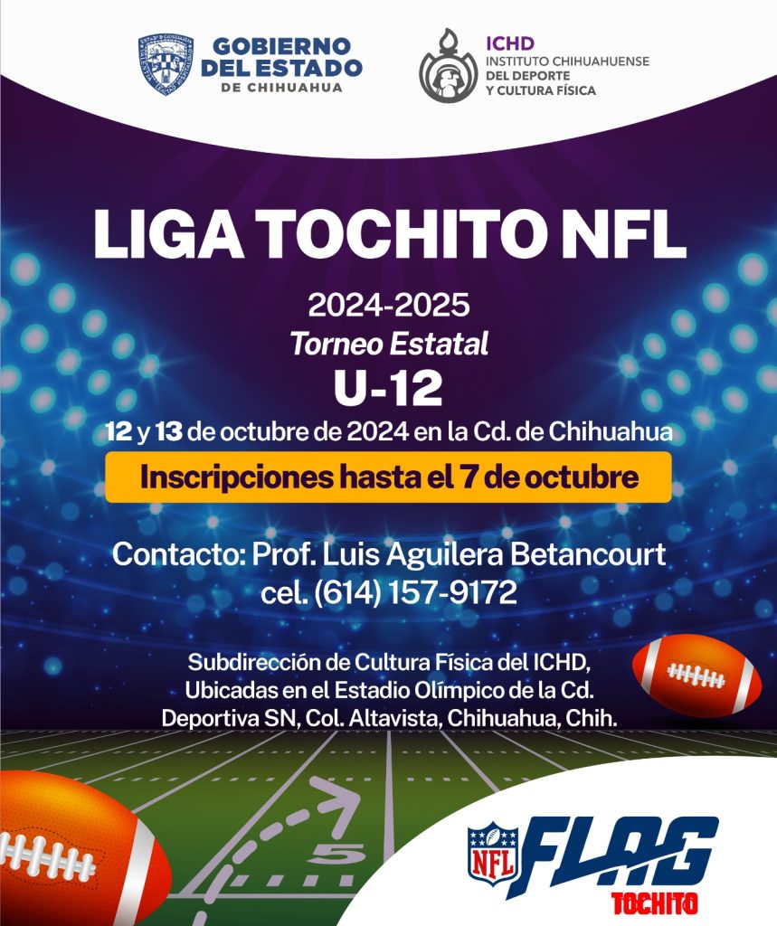 El Instituto Chihuahuense del Deporte y Cultura Física, invita a escuelas públicas, privadas, clubes de tochito o de futbol americano, y a equipos en general a participar en este evento que fomenta el ejercicio, el compañerismo y la sana competencia, como parte del programa Juntos en el Deporte Escolar.