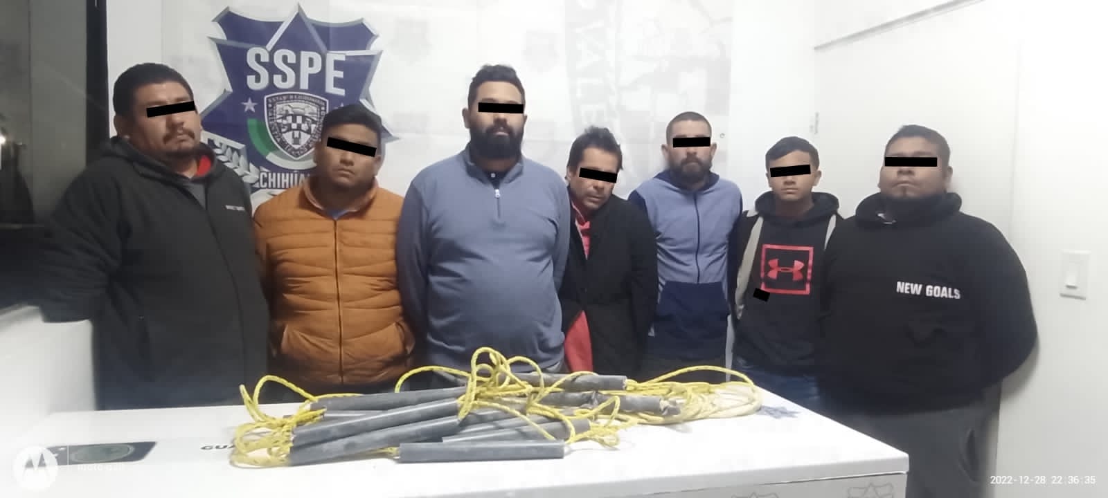 Los detenidos fueron identificados como Gabriel D. B. de 46 años de edad originario de Delicias, Pedro Eduardo P. P. de 38 años de edad originario de Ciudad Juárez, César Octavio P. M. de 39 años de edad originario del Estado de México, David Bryan G. B. de 23 años de edad originario de Ciudad Juárez, Alejandro M. G. de 35 años de edad originario de Veracruz, Issac Oved C. E. de 19 años originario de Durango y Fernando G. H. de 27 años de edad originario de Ciudad Juárez.