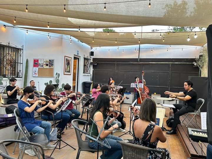 Fue así que en el 2016 formó la primera orquesta de nombre Silvester Revueltas, formada en su mayoría por amantes de la música ‘amateurs’. Dieron tres conciertos, el primero fue en 2019 en la clausura del premio Fomac, la segunda fue en el Concierto Navideño del Conservatorio y la última fue en el Centro de la ciudad.