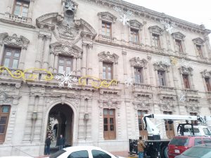 Además ya se comenzó con la decoración del Palacio de Gobierno, en el que también coloron un árbolito.