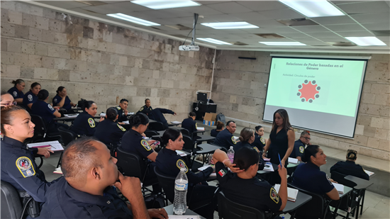 La Dirección de Seguridad Pública Municipal (DSPM) informa que 71 policías y tres colaboradores de personal administrativo se capacitan en la Norma Oficial Mexicana EC0539 “Atención presencial de primer contacto a mujeres víctimas de violencia de género”, para reforzar conocimientos sobre atención a mujeres víctimas de violencia de género.