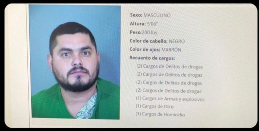 En la ficha se puede ver una foto del sospechoso, junto con los cargos por detención entre los que figuran el delito de homicidio.