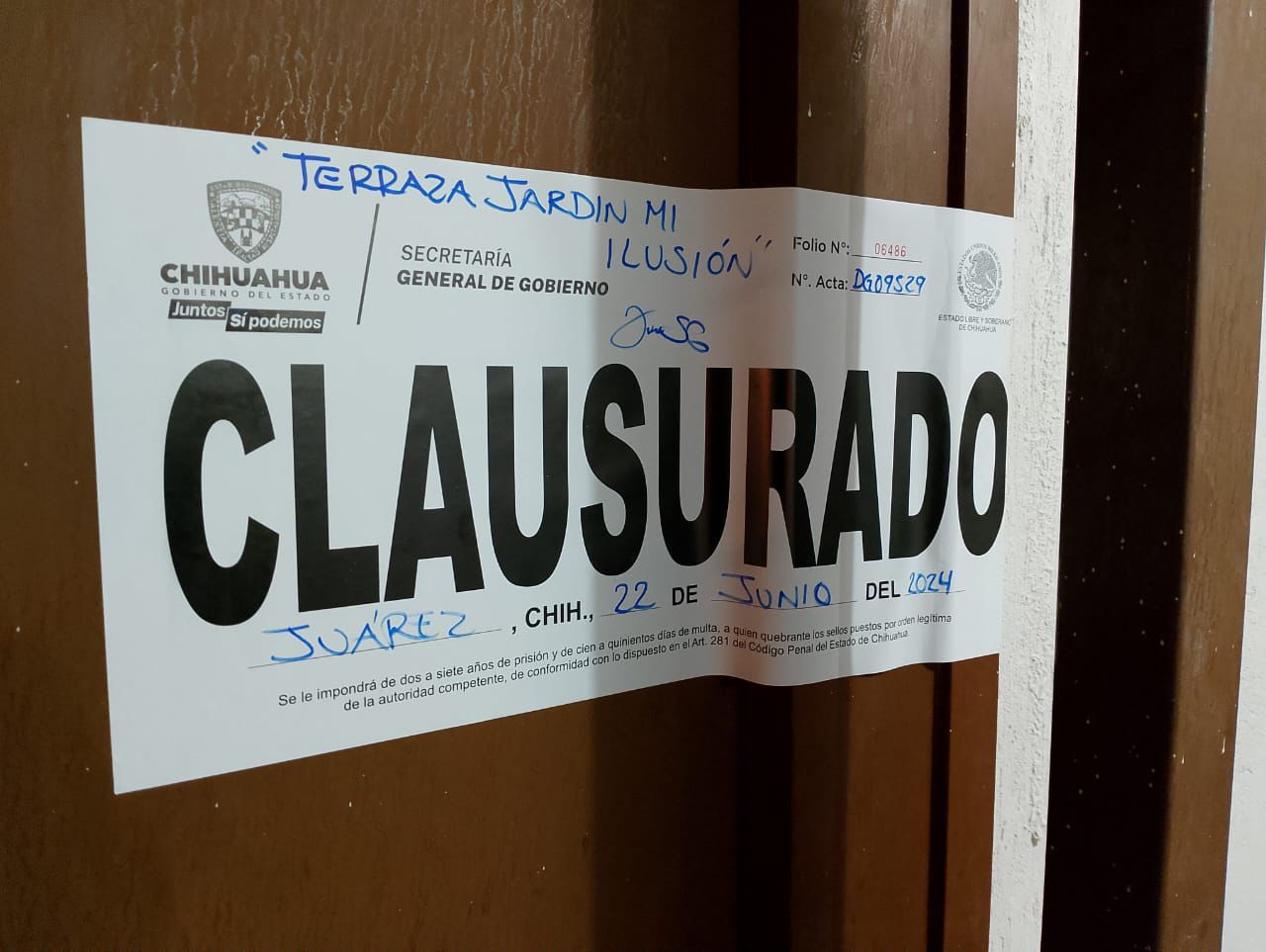 * Terraza Jardín “Mi ilusión” por no contar con documentación de bebidas alcohólicas (sin licencia) (Juárez)