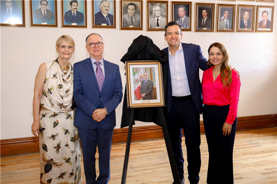 Para la develación y colocación de la fotografía, estuvo presente la esposa del exalcalde, Luisa Camberos, sus hijos y su nieto, así como los directores del Gobierno Municipal y regidores del Ayuntamiento de Chihuahua.
