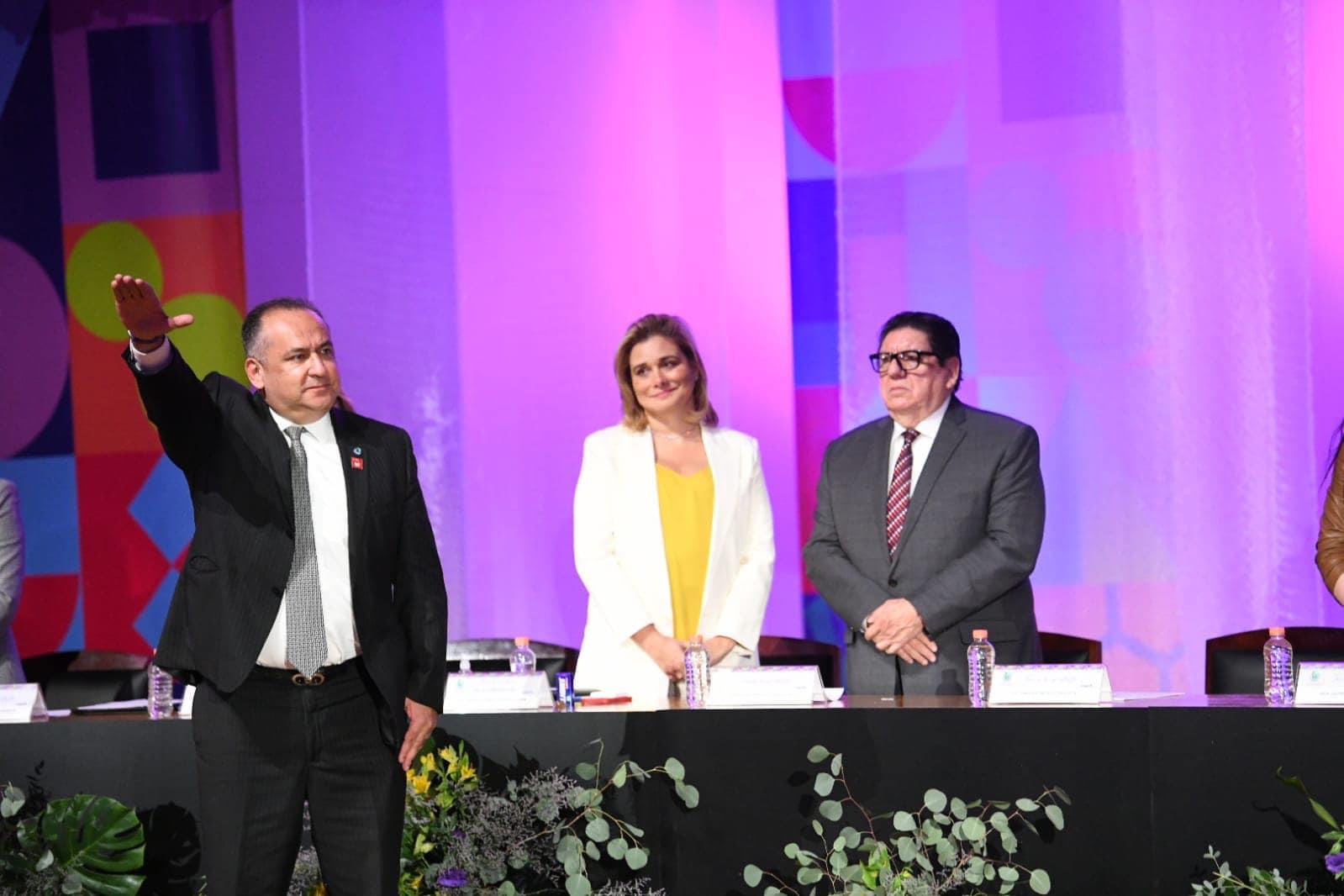 El presídium fue ocupado por la Gobernadora María Eugenia Campos Galván, el secretario de Educación, Javier González Mocken, la magistrada presidenta del Tribunal Superior de Justicia, Myriam Hernández Acosta, al alcalde Marco Bonilla y la directora general de Educación Superior Universitaria Intercultural, Carmen Rodríguez Armenta.