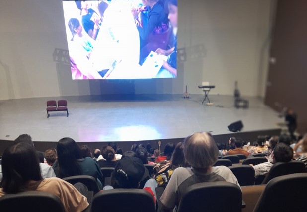 Jóvenes del programa “Niñas, Niños y Adolescentes a la Educación” de la Dirección de Seguridad Pública Municipal (DSPM), fueron llevados junto a sus padres al estreno de la obra de teatro “Urbi Chon y su Granja de Zoobiduría”, organizada y dirigida por la asociación civil “Sulam el Ascenso A.C”.