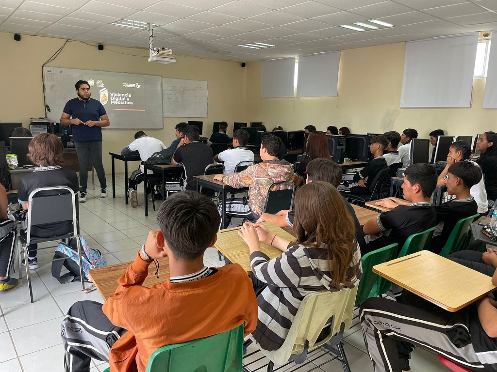 Alumnos de primaria y preparatoria recibieron las capacitaciones de Violencia, tipos y modalidades, así como sobre delitos cibernéticos, por parte del Instituto Municipal de las Mujeres.