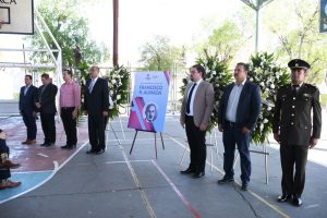 El acto protocolario se efectuó en la escuela Primaria Estatal que lleva su nombre y fue encabezado por el titular de la SEyD, Francisco Hugo Gutiérrez Dávila, en representación de la gobernadora Maru Campos, además de autoridades educativas, docentes, estudiantes y familiares del homenajeado.