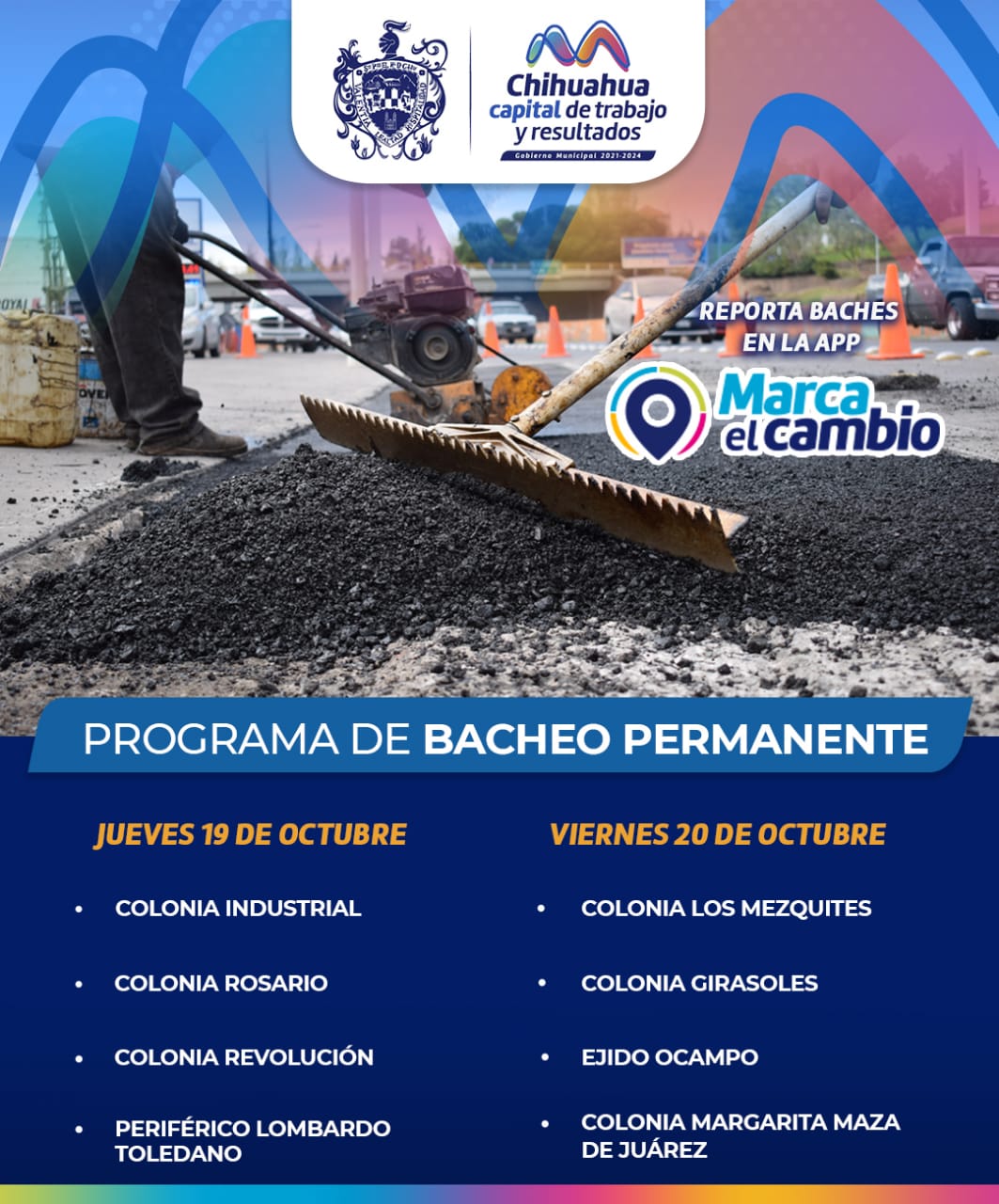 Se exhorta a los ciudadanos a tomar precauciones por las zonas donde se realizarán trabajos jueves 19 y viernes 20 de octubres, en calles, avenidas y colonias de la Capital.