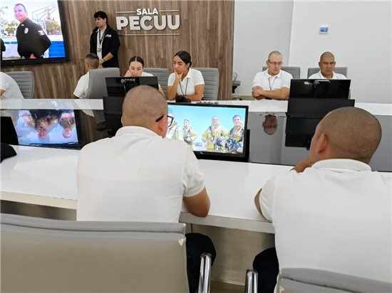 Fueron 41 futuros policías estatales, quienes, acompañados del policía e instructor, José Gerardo Ramos, recibieron un recorrido, principalmente por las salas PECUU, el Centro de Emergencias y Respuesta Inmediata 9-1-1 o CERI, el Centro de Monitoreo e Inteligencia y el área de Detención, donde la juez en turno les explicó las bondades que ofrece el nuevo sistema de Justicia Cívica.