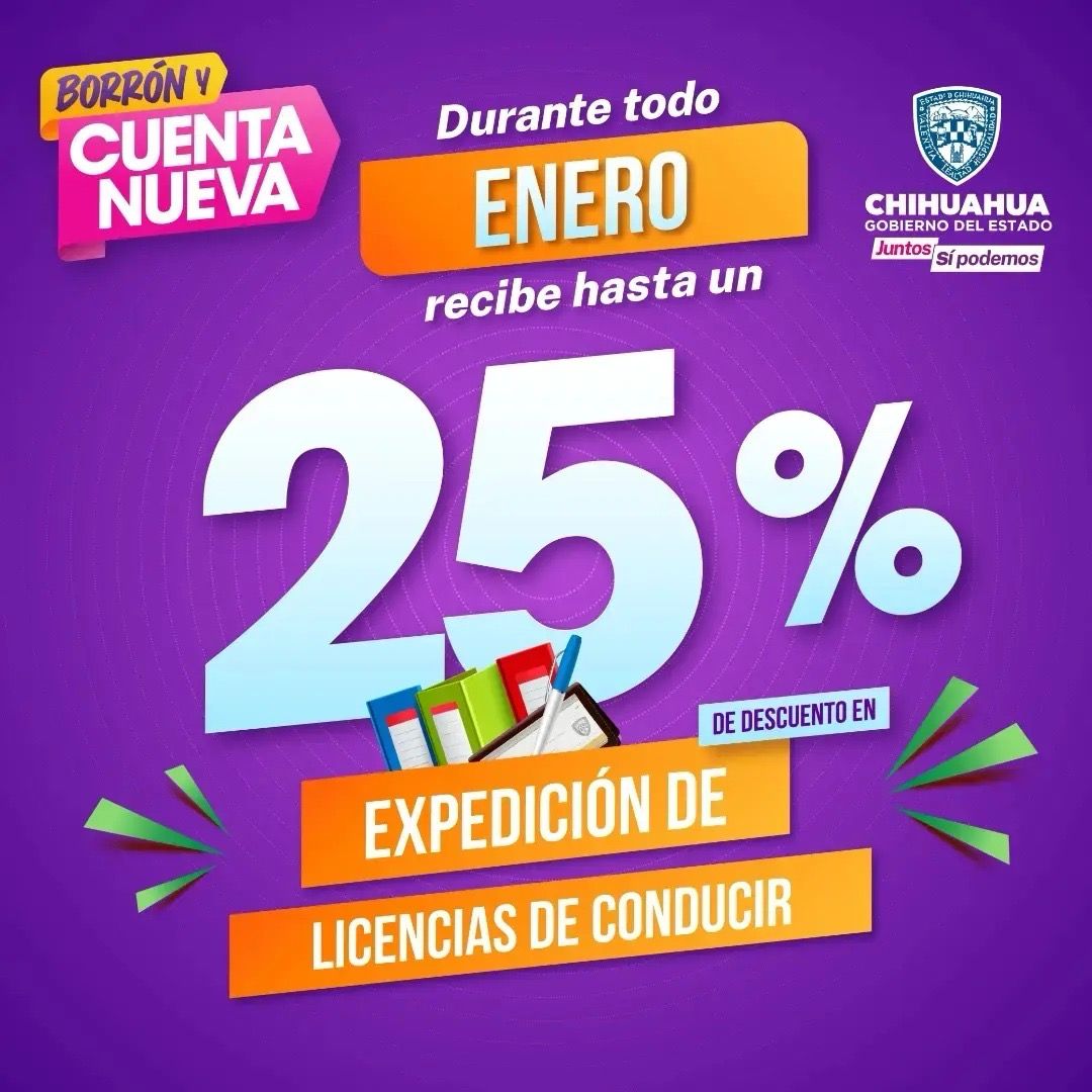 La Secretaría de Hacienda recuerda a la población que, durante el mes de enero, continúa el programa “Borrón y Cuenta Nueva”, con el que se ofrecen descuentos en diversos conceptos como multas a la ley de tránsito, renovación de licencia, adeudo vehicular y otros.
