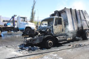 El camión que resultó afectado es propiedad del gobierno municipal, es de la marca International modelo 2008 y se disponía a depositar residuos en el relleno sanitario.