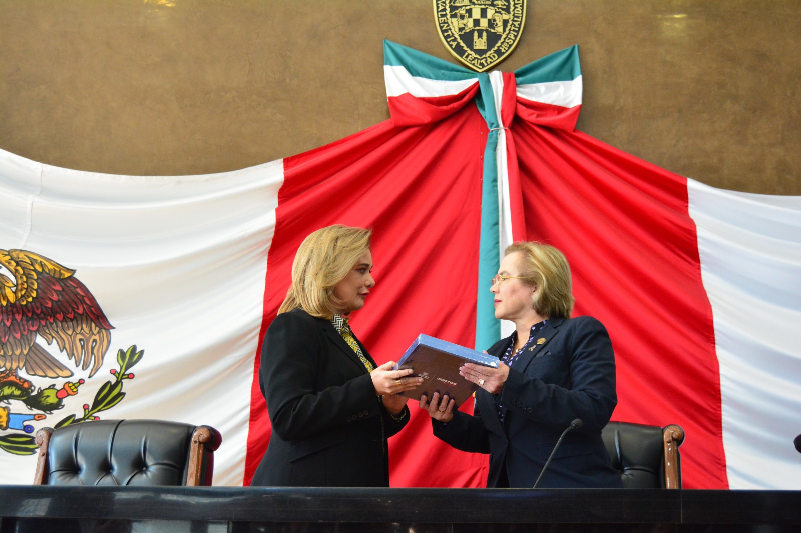A las 10:30 inicio la ceremonia protocolaria y Maru Campos, gobernadora de Chihuahua hizo acto de presencia para hacer entrega de su informe de labores ante el Congreso del estado. La acompañaba un sequito de colaboradores atentos a cualquier señal que les hiciera la mandataria.