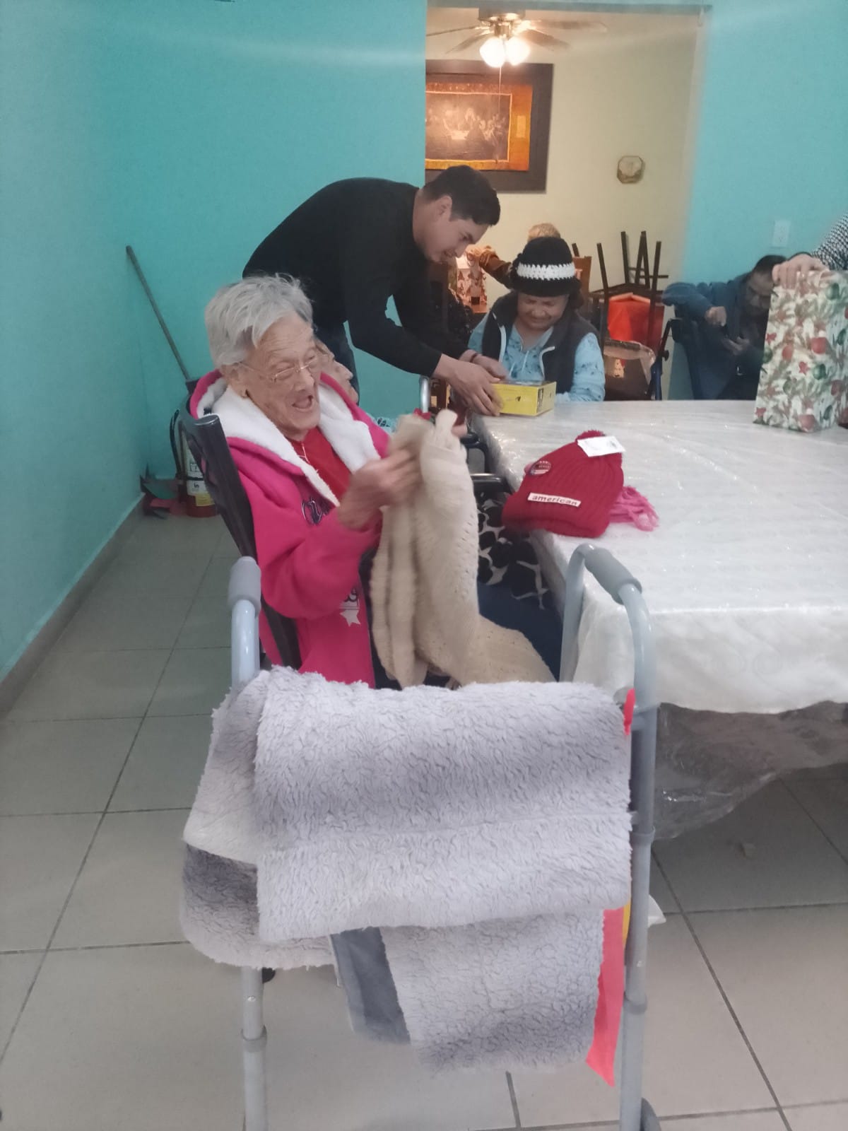 Durante la posadita, los «abuelitos» recibieron una cena y bebidas por parte de los alumnos del grupo DN41M que durante el mes de noviembre realizaron la campaña «apadrinar un abuelito» en la que recaudaron regalos y detalles para los miembros del asilo.