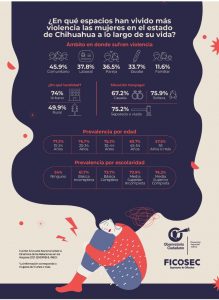 Más del 70% de las mujeres en grupos de edad de 15 años y hasta los 44 años, identifican haber vivido violencia; lo mismo comentó el 69.7% de mujeres entre 45 y 54 años de edad, así como el 57.5% de 55 años y más del estado de Chihuahua.