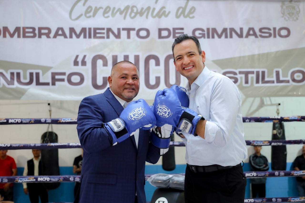 El alcalde Marco Bonilla en compañía del campeón de boxeo y entrenador, Arnulfo “El Chico Castillo”, develaron la placa conmemorativa, para renombrar el gimnasio de box ubicado en el Parque El Palomar, con el nombre de este boxeador, como homenaje a toda la labor que ha realizado en cientos de jóvenes y poner en alto a Chihuahua en los diferentes campeonatos en los que participó.