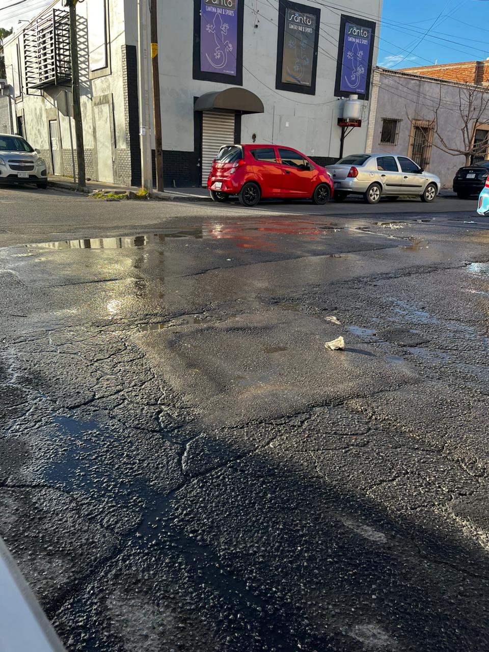 En las inmediaciones de las calles Rosales y Escorza es dónde se generó la mega fuga de agua ocasionando conatos de choque ya que el pavimento está mojado de igual manera los automovilistas que pasan externan su molestia pues en algunas colonias sufren por la falta del líquido vital.