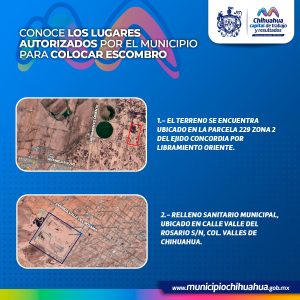 2.- Relleno Sanitario Municipal, ubicado en calle Valle del Rosario S/N, col. Valles de Chihuahua. Con vigencia permanente.