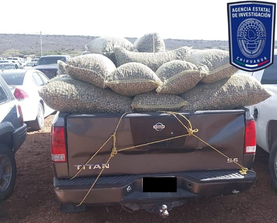 Elementos de la Agencia Estatal de Investigación (AEI), detuvieron en la ciudad de Parral a un masculino de nombre José L.L., que transportaba 35 arpillas que contenían un total de mil 500 kilogramos de nuez de dudosa procedencia.