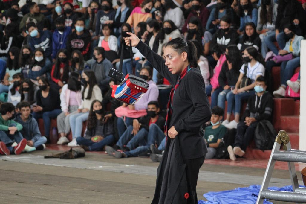 En el marco del cierre de actividades conmemorativas del Mes de la Juventud, jóvenes de la preparatoria María Comadurán Chávez, así como de las secundarias Abraham González y Técnica 7 de ciudad Guerrero y del CECYTECH #2 y la Secundaria 62 del poblado de La Junta, disfrutaron de esta puesta en escena.