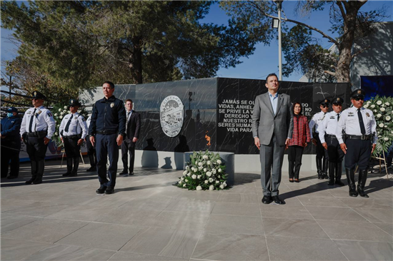 Ahí, el alcalde Marco Bonilla reconoció la valentía de los elementos que cayeron en el cumplimiento de su deber, dando la vida por personas desconocidas y, sobre todo, por su vocación de servir y proteger a las familias de Chihuahua Capital.