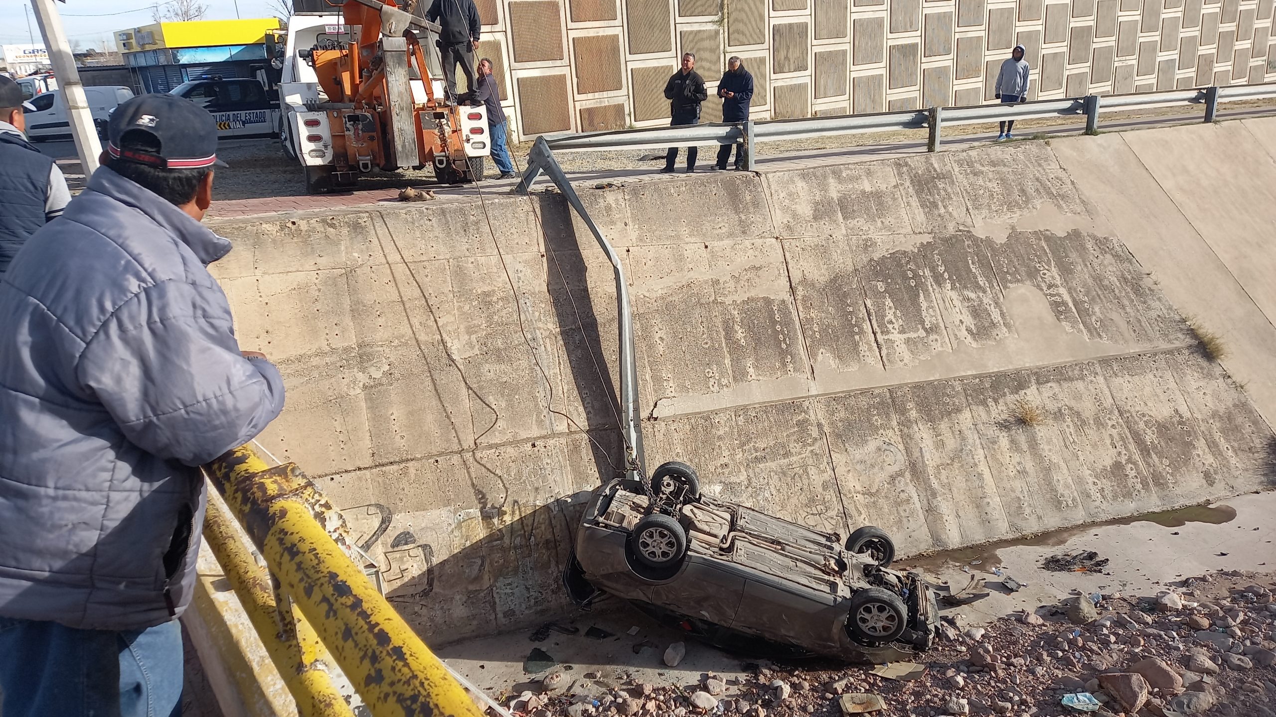 Se trato debun Ford Focus el cual se encontraba a la altura debla calle Venceremos donde pasaban personas y se percataron del vehículo destrozado con las llantas arriba y dentro del canal de desagüe.