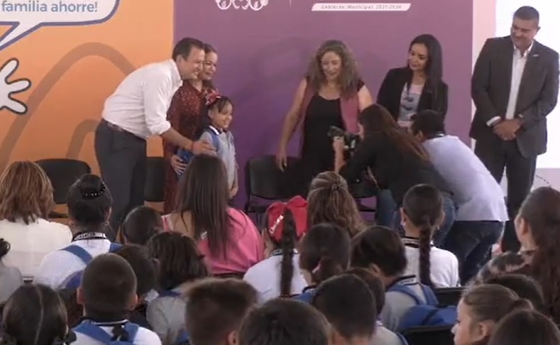 El alcalde Marco Antonio Bonilla realizó la entrega de ‘Mi bolsa escolar’ a niños y niñas de la escuela Primaria Independencia, la cual incluye una mochila, cuadernos, lápices y colores, entre otros materiales educativos.
