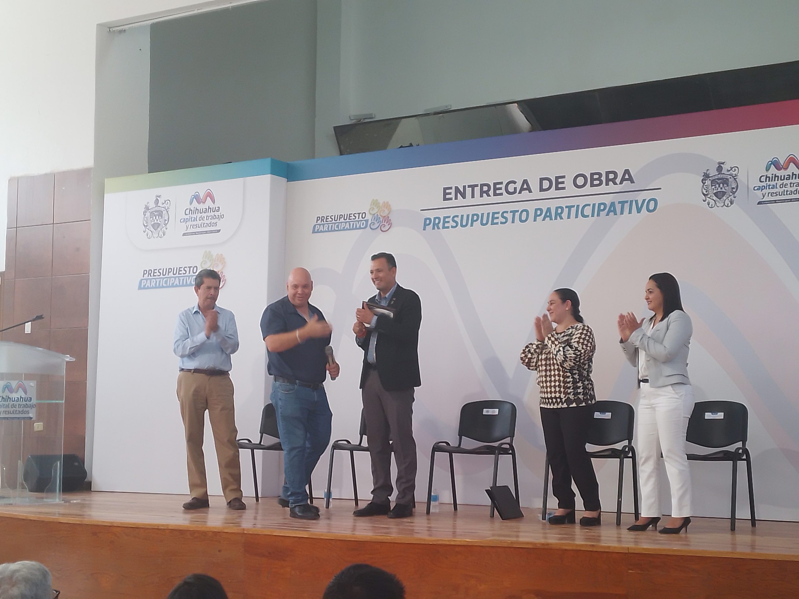 El alcalde Marco Bonilla encabezó la entrega de la rehabilitación de las instalaciones del auditorio en la escuela Primaria Melchor Guaspe, ganadora del presupuesto participativo.