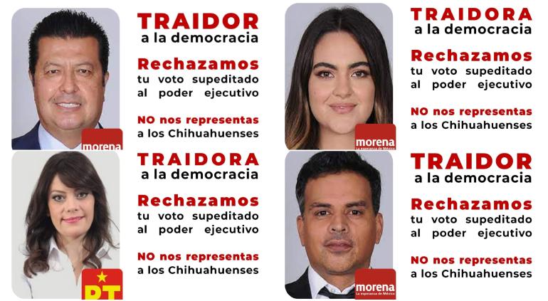 Además adjuntaron las fotografías de los diputados tanto de Morena como del Partido del Trabajo que se pronunciaron a favor de la reforma «contra el INE», mismos a quienes llamaron «traidores a la democracia»: