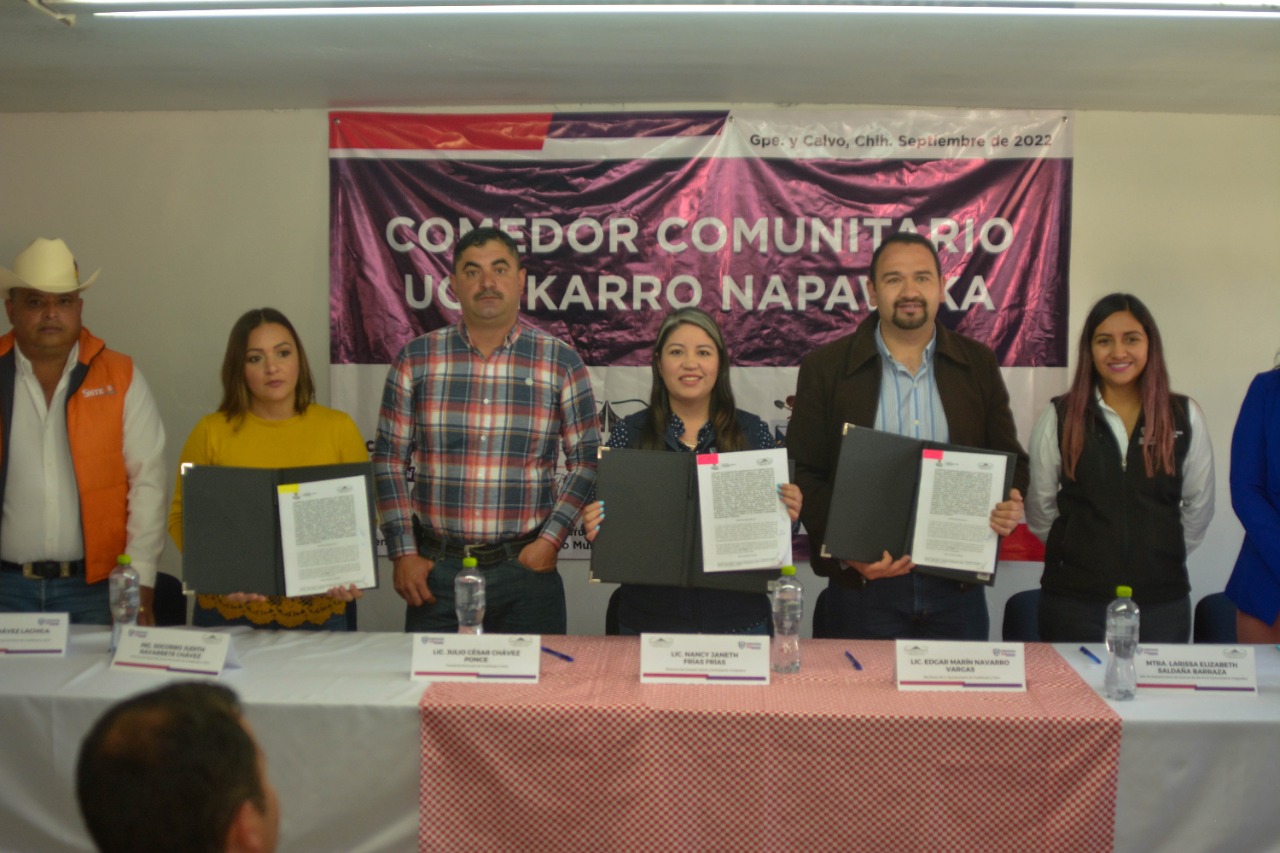Nancy Frías informó que como parte de este acuerdo signado con el Ayuntamiento de Guadalupe y Calvo, la SDHyBC contribuirá de manera bimensual con una amplia variedad de insumos para la elaboración de los diversos menús que el comedor ofrecerá a las personas en esta región.