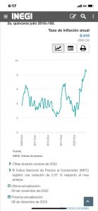 La inflación en México del mes de octubre fue de un 8.4%, por debajo de las expectativas de los especialistas que habían considerado sería de un 8.6% para este período.