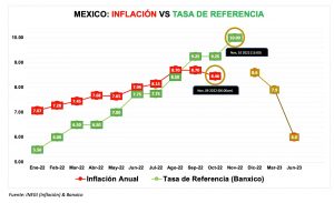 El INPC mostró así señales de contención luego de la política monetaria restrictiva que ha aplicado el Banco de México, que ha elevado la tasa de interés hasta 9.25% y mañana podría subir hasta un 10%.