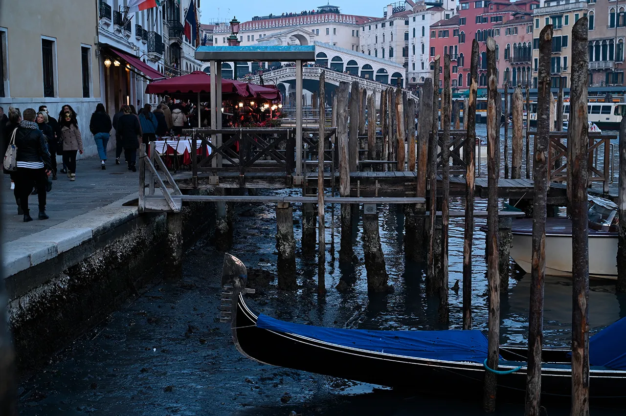 En otras zonas, como el río de Santa María Formosa, sí había agua, pero los gondoleros tuvieron que remar con cuidado debido al bajo nivel del mar.
