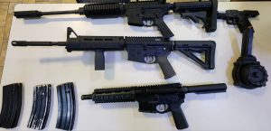 Describió que decenas de elementos arribaron al lugar en donde fueron localizados estas personas, a las que se les aseguraron tres armas de fuego largas calibre .223, cada una con un cargador y cinco cartuchos del mismo calibre, así como un arma de fuego corta marca Taurus calibre nueve milímetros con un cargador con capacidad de 50 tiros, abastecido con 10 cartuchos del mismo calibre.