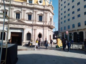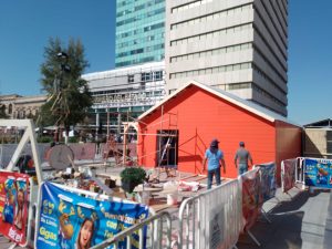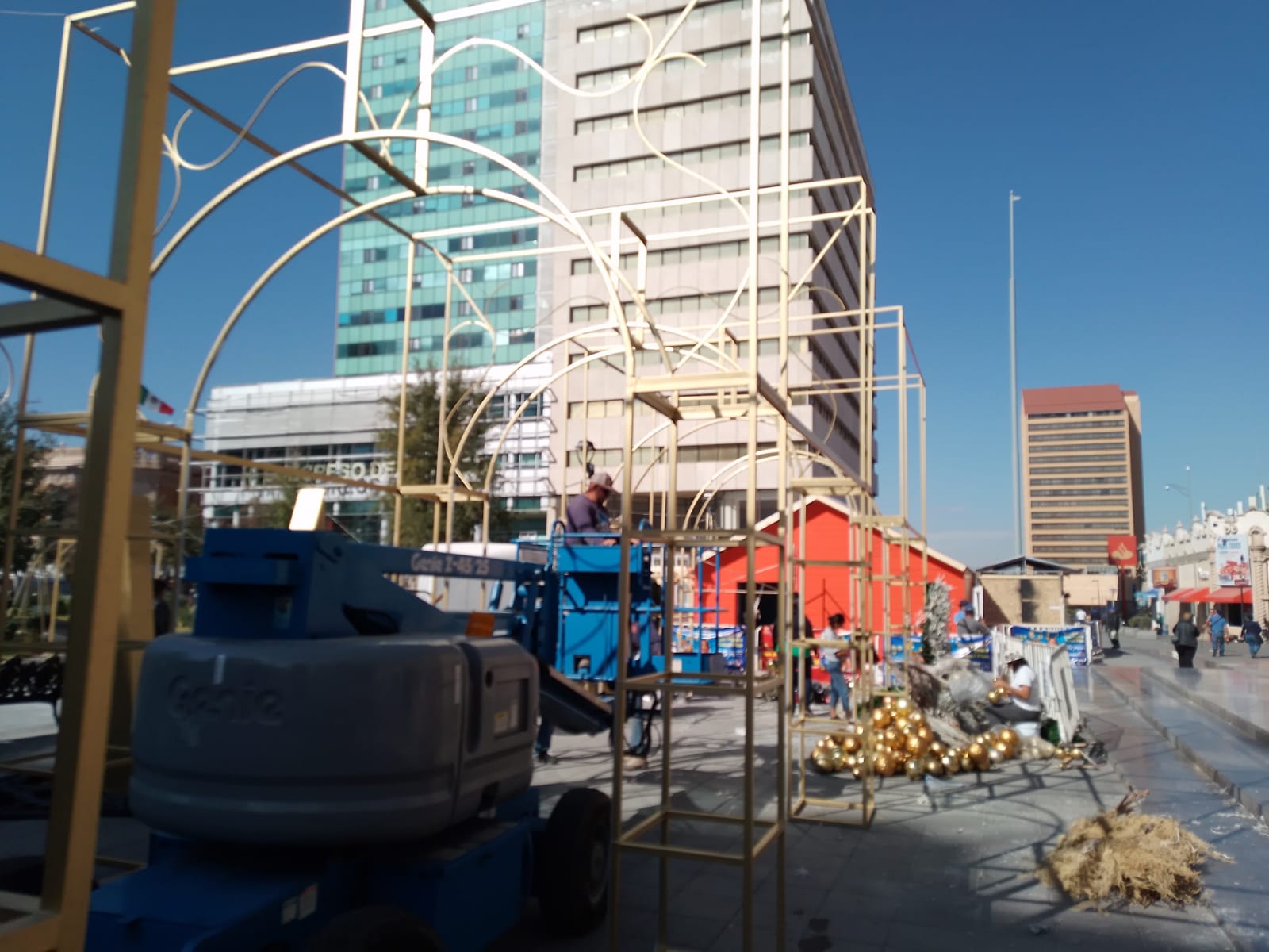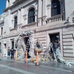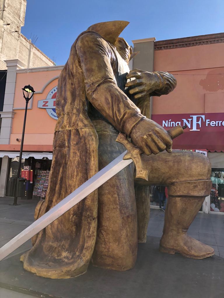 La estatua de El Príncipe de la obra la Golondrina y el Príncipe llegó hoy a la Plaza de Armas, además de que personal de Municipio comenzó continúa con la instalación de la Casita de Santa así como otros adornos en los alrededores.