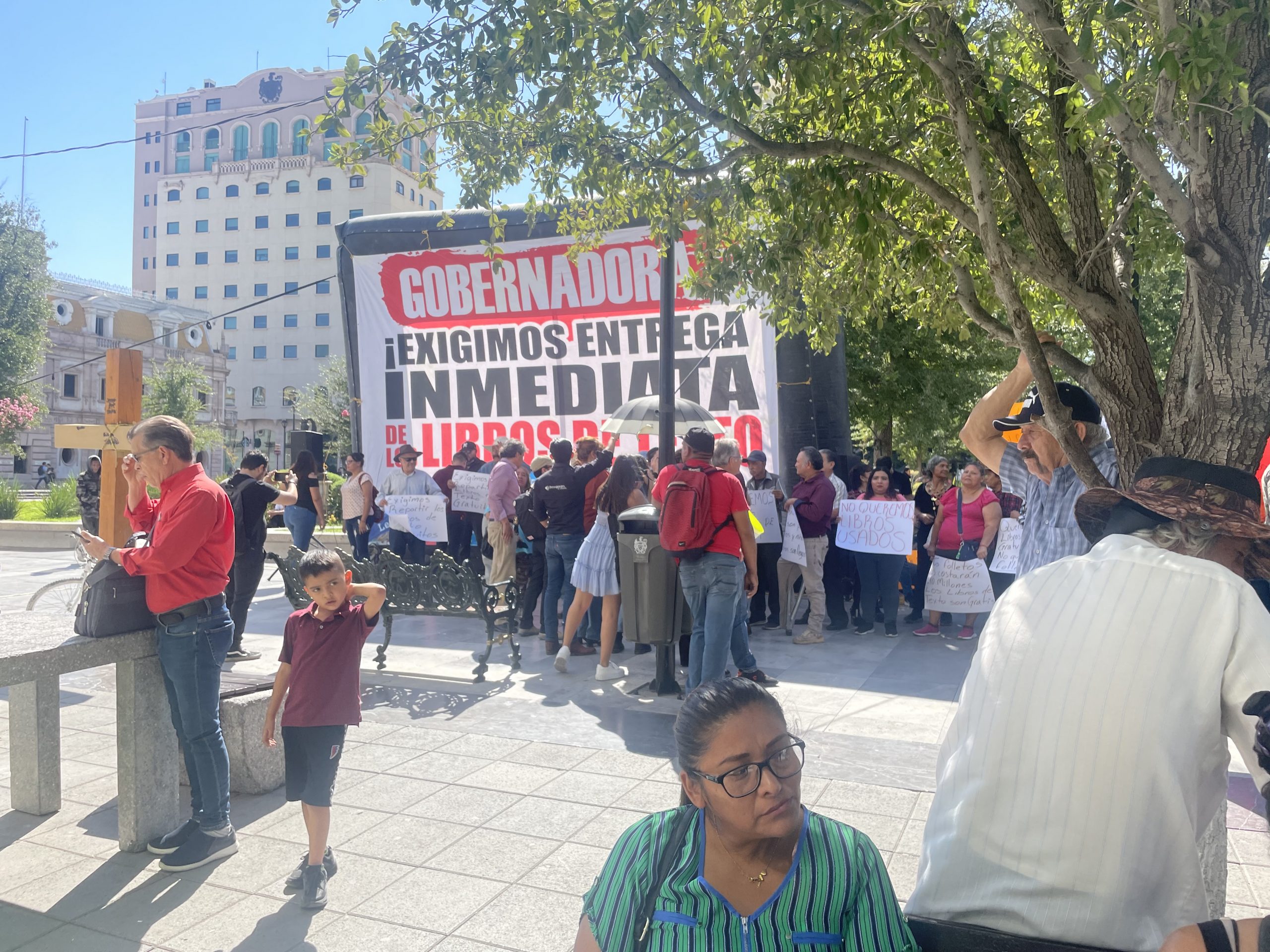 El comité estatal por la defensa de la escuela pública, se manifestó a las afueras del Congreso del Estado, afín de exigir la entrega de los libros de texto gratuito.