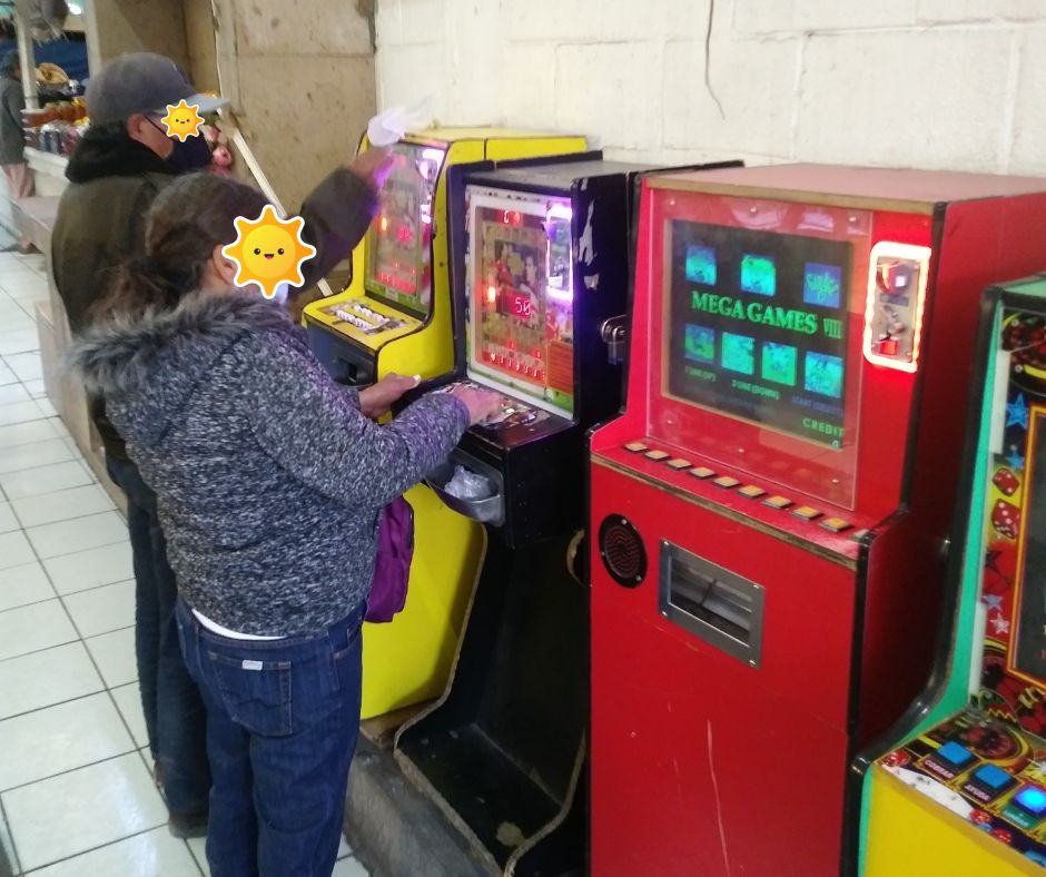 Los vistosos y ruidosos artefactos, algunos de ellos con una silla de plástico enfrente, son frecuentados diariamente por los incautos que cambian su dinero por pesos para poder disfrutar el juego mientras van depositando una a una las monedas de poco valor, pero minutos después, esa cifra aumenta a cientos, hasta que se quedan sin nada y hasta temblando por la necesidad de seguir tentando a la suerte.